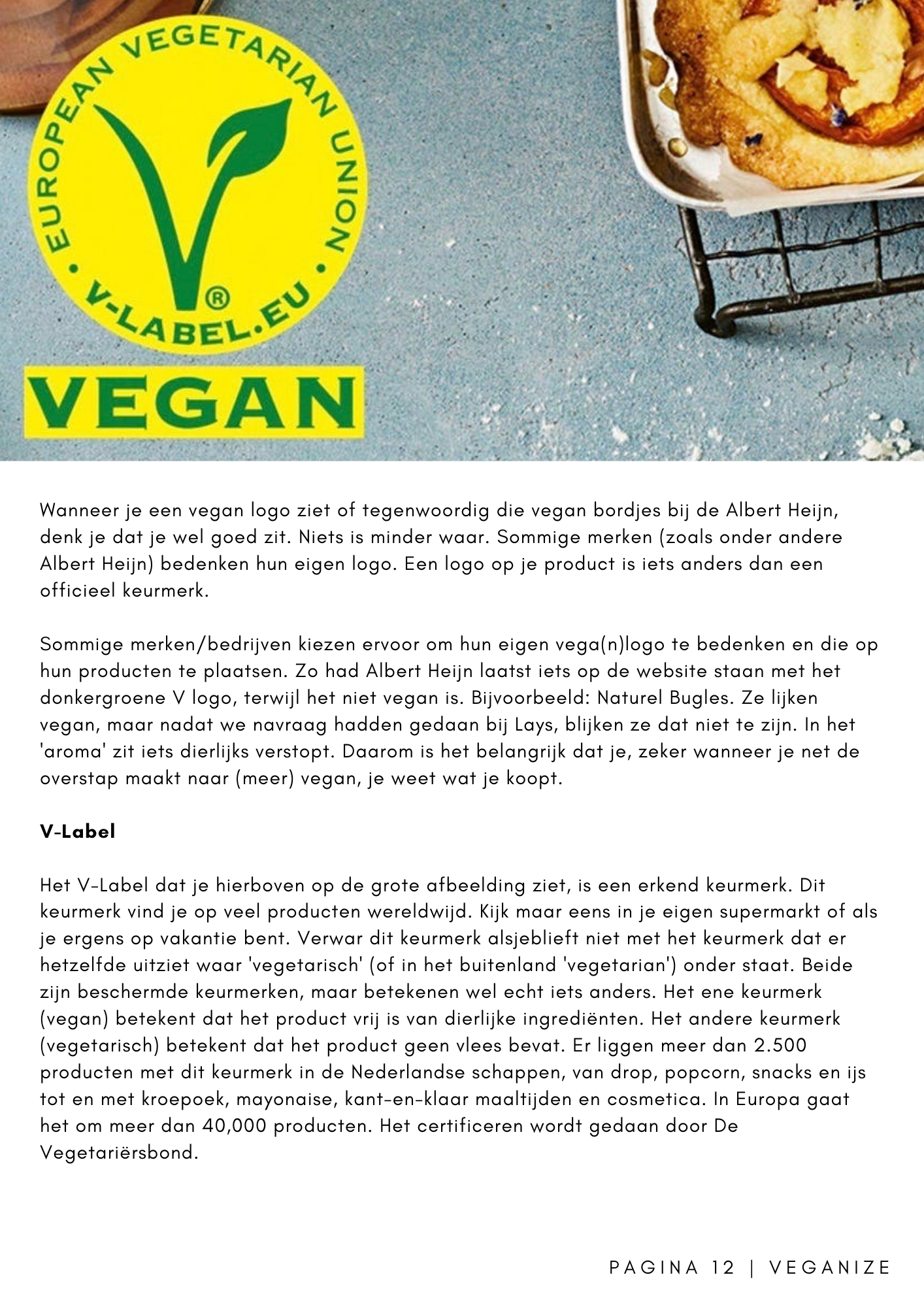 Dit e-boek bevat informatie over verschillende keurmerken, e-nummers, maar ook hoe je omgaat met flauwe opmerkingen of bijvoorbeeld verjaardagen. Zelf ging er een wereld voor me open qua ingrediënten. Ik had bijvoorbeeld nog nooit van Edelgistvlokken gehoord. Ook vertel ik je hoe je dierlijke ingrediënten kan vervangen en geef ik tips over het lezen van etiketten. Zie hieronder een aantal pagina’s uit het e-boek. Klik op de afbeelding om de pagina op volledige grote te bekijken. Onder de afbeeldingen vind je een groene knop om het e-boek te downloaden. Enjoy je vegan journey en als je vragen hebt, stuur me dan vooral een berichtje via Instagram: @HetGroeneBroertje Let op: Het e-boek is op a4 formaat, dus op een laptop kan het wat overweldigend zijn als je ‘m opent. Je kan uitzoomen door met je rechtermuisknop op de voorpagina te klikken.