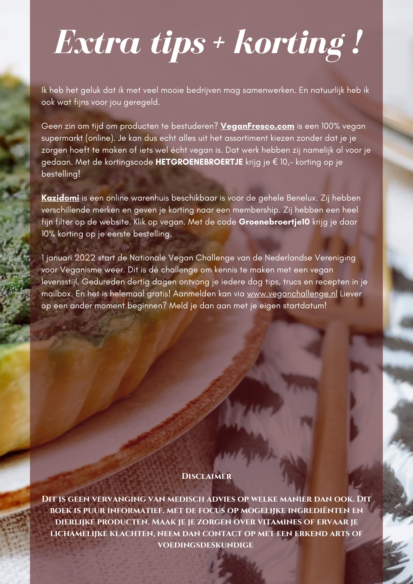 Ik heb een aantal vrienden gevraagd om hun steentje bij te dragen. Zo hebben Dennis van Plantbased Dennis, Judith van Bonusvegan, Lisette van VolwaardigPlantaardig en Suzanne van PuurSuzanne ook een tip gegeven om je te helpen op je vegan journey.