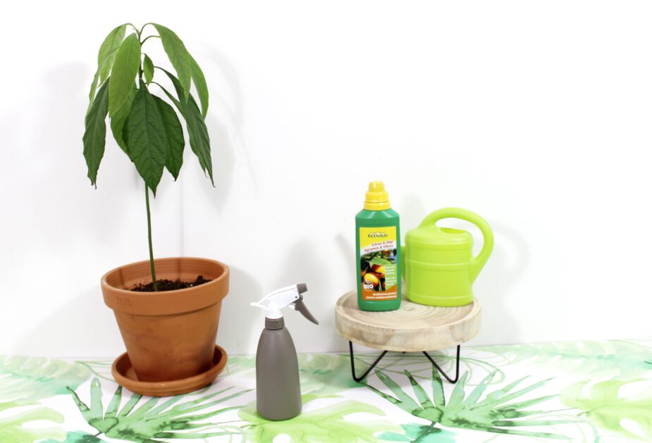 Zoals de meeste planten heeft ook je avocadoplant voeding nodig. De voeding die standaard in de potgrond zit is binnen afzienbare tijd op en je plant moet natuurlijk wel genoeg voeding krijgen om te kunnen groeien. Ik gebruik Citrus en Olijf van het merk EcoStyle (te koop bij het betere tuincentrum) en geef ze dit één keer per twee maanden. Heel simpel, een half dopje in een liter water en hoppakkee, schenken ermee! Daarnaast spuit ik de bladeren een keer per twee weken nat met regenwater. Niet teveel, maar zorg dat alle bladeren een beetje vochtig worden. Vinden ze lekker.