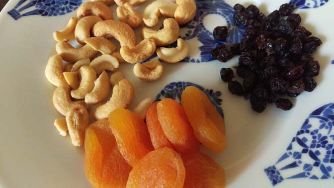 - Gezond en lekker: nootjes en gedroogde vruchten. Of gewoon een bakje pinda’s. Jam-jam!